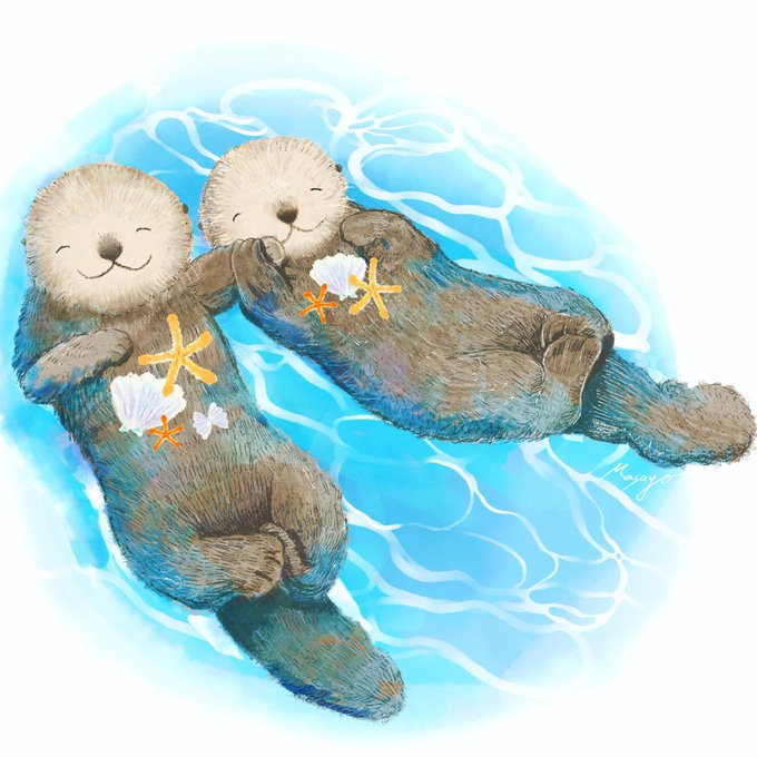 不器用な子 秋冬新作 ラッコ 貝 アート イラスト 原画 動物